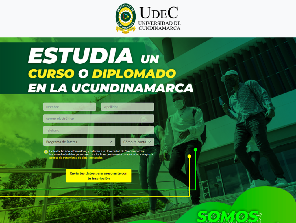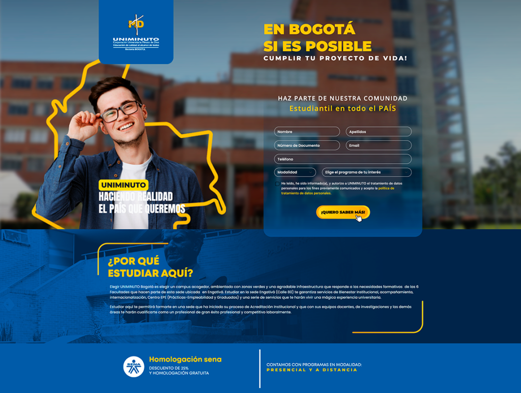Programación de landing page para la campaña de inscripciones Uniminuto 2023.