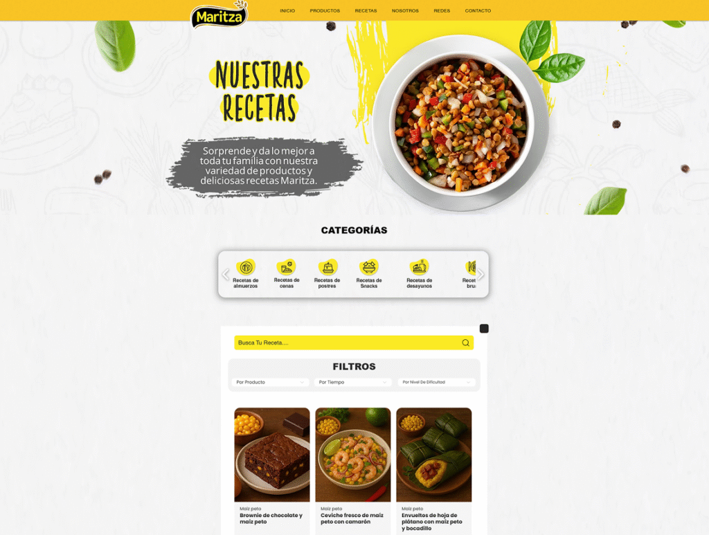 Desarrollo de sección de recetas, con filtros personalizados en WIX Studio.